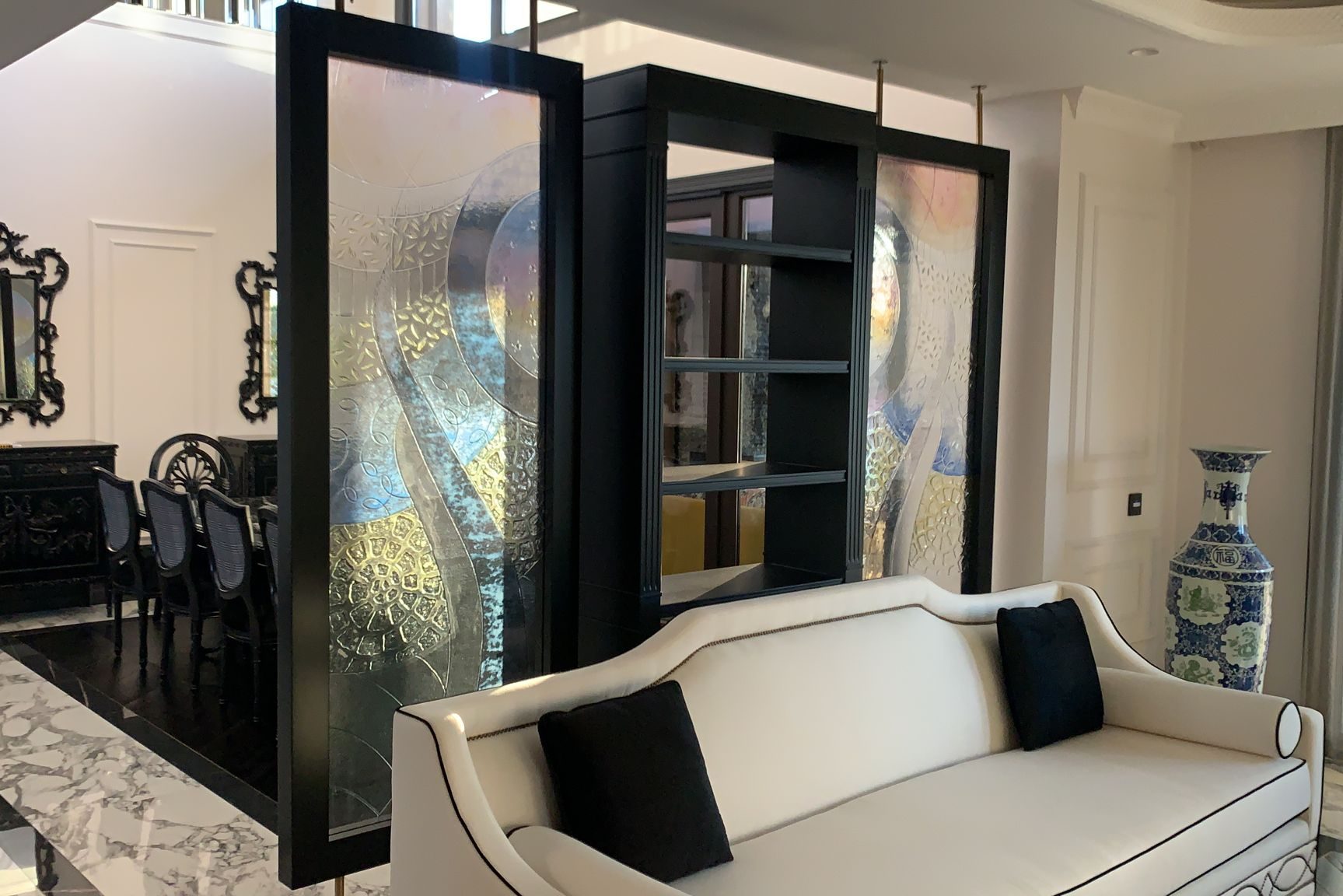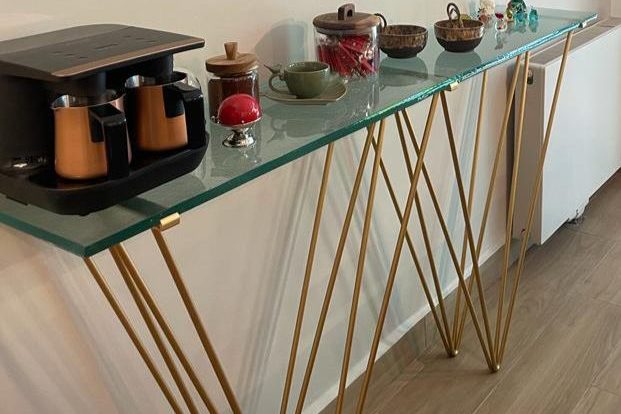 Mimar Areş Peykari ile oda bölücü çalışmalarımıza başlıyoruz. İki adet ayna yüz 8 mm cam panel çalışmaları, elle renklendirilecek.
