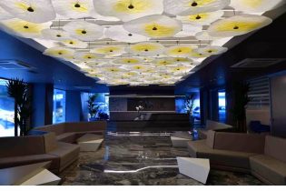 Geyran Mimarlık’a ait projenin giriş fuaye tavan tasarımında CARTA dekoratif cam panellerimiz kullanıldı.